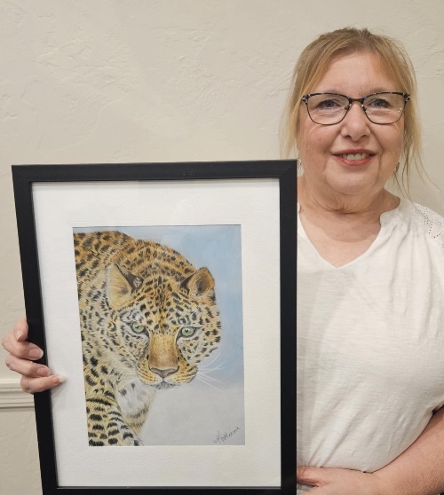 Katherine recently participated in the Saddlebrooke Fine Art Guild’s Open Studio tour, and she will be showing her work in the Art Show and Sale at Mountainview on February 20 and 21st. Be sure to visit her booth to check out her portrait of an amur leopard- found in China and Russia and one of only 130 left in the wild.